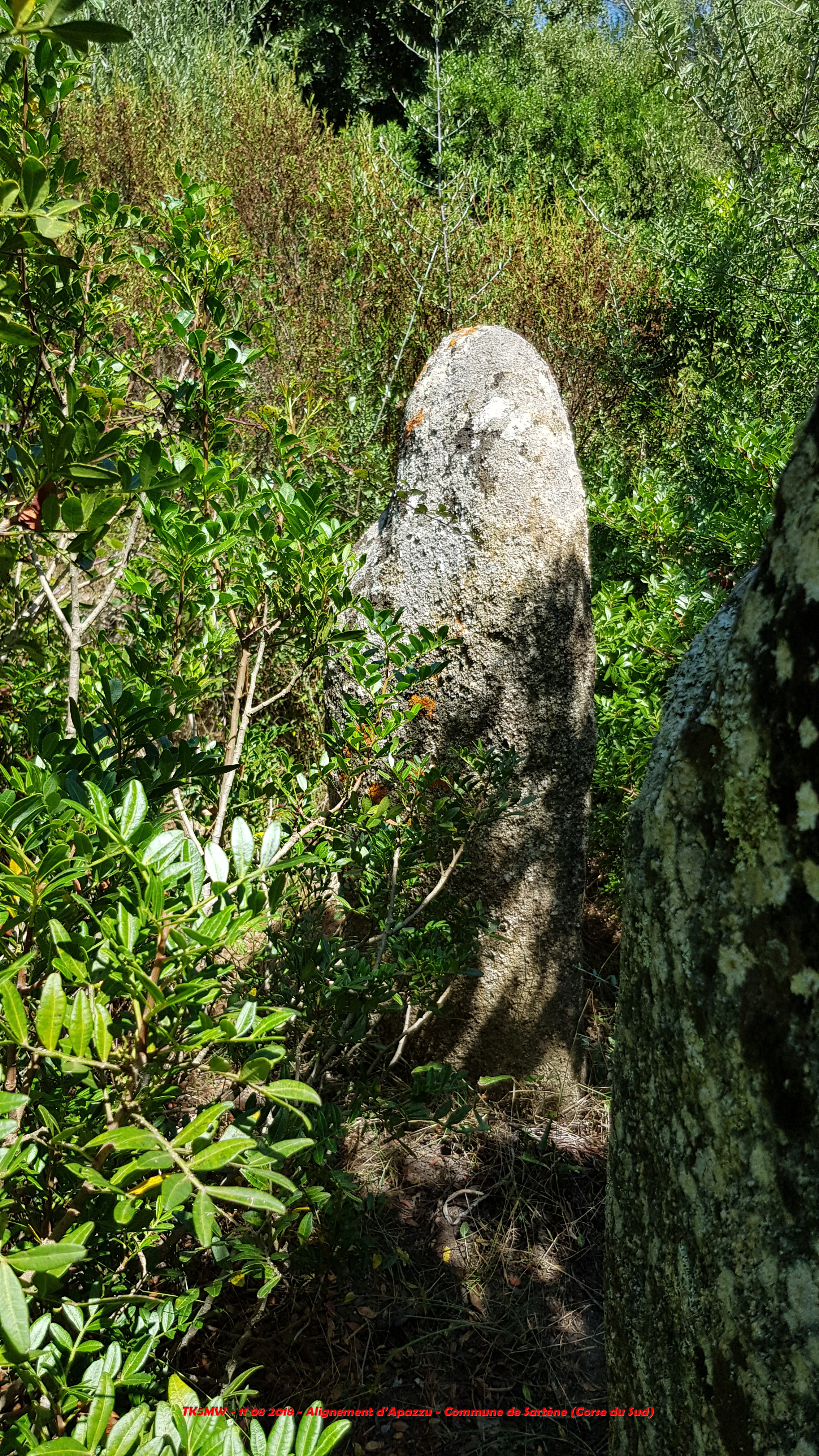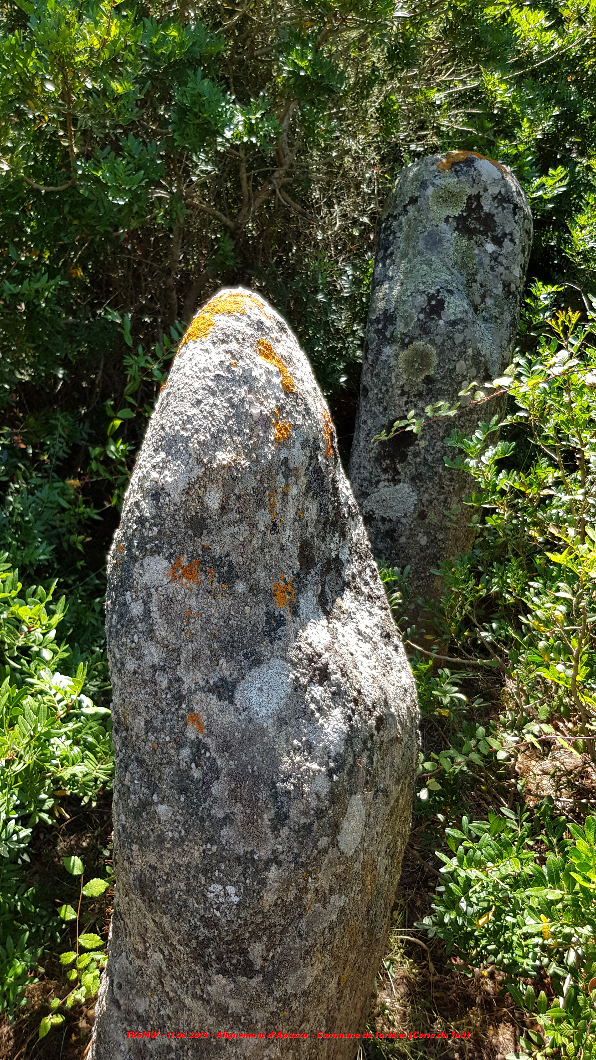 Menhirs de Pacciunituli sur la commune de Zonza et San Gavini di Carbini en Corse-du-Sud. Aujourd'hui, seuls deux menhirs sont encore dressés mais ils faisaient partis de plusieurs alignements. Ces monuments sont associés au toponyme Pianu di i Stantari, sur un axe de passage et sur un col en limite de plateau. Ils sont datés du 3ème millénaire avant notre ère. Un alignement se dresse dans un champ de Sant'Antonaccia. Un second groupe près d'une source non loin de Sant'Antonaccia. Et enfin, dans le secteur de Ramatoghju, plusieurs fragments de statues-menhirs ont été révélés dans le parement d'un mur de clôture.
